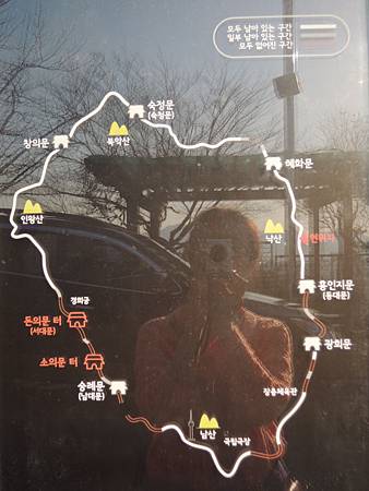 我走的路段照了一張(從駱山到東大門)~ 這邊也是到處都有首爾城郭地圖