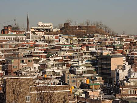 一路上左手邊是依山而建的有些年紀的韓國傳統式房屋