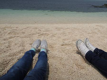 我們找了個位子坐下來~ 看這顏色分明的海水 淡淡的祖母綠顏色