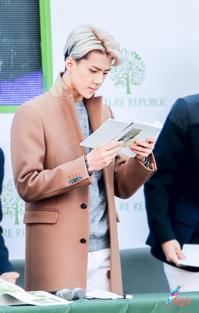 休息喝口水的忙內!!! 認真簽名的男人最帥氣了!