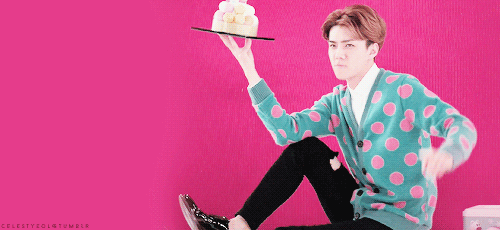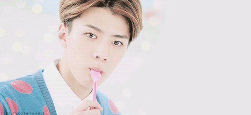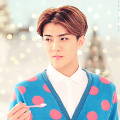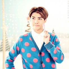 吳世勳穿著我喜歡的天空藍色,還有粉色點點