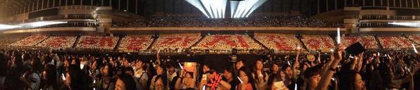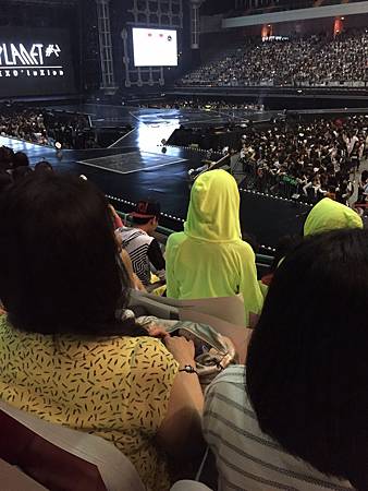 比起圓形的首爾場 小巨蛋長方形的ab區感覺好小,放的人少,但搖c很擠擠一擠。而且福利似乎必定要少一些,二樓第一排離花道好遠,哭。