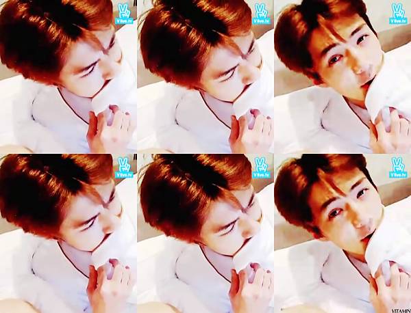 最近跟白,玩什麼 我們玩聲帶模仿?其他哥哥在幹嘛 暻秀賢記載去運動 其他人應該在休息吧 頗啊摟一切 (不是中英韓文我聽不懂)