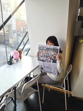 買了當天的報紙,是孩子們的全版面!! 一邊看報一邊等我們的咖啡!!! 最後借花獻佛把那個報紙給了二姊~ 二姊滿足地看了那個全版面的照片