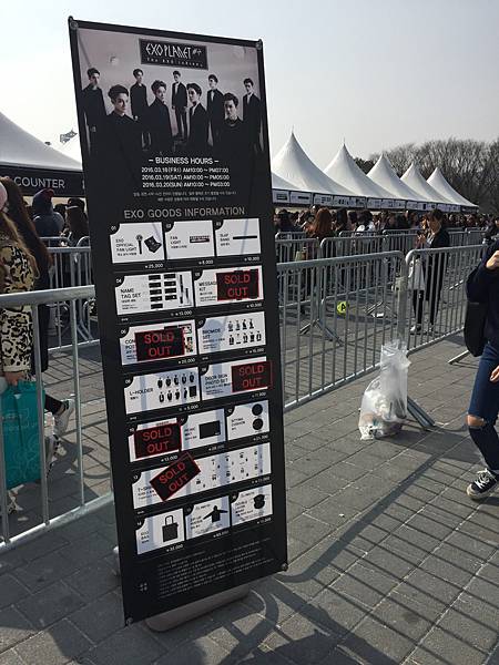 第二天才補拍的^^ 拍很多次場外了好像都差不多~貼紅紙的是已經售完的周邊~ 眼熟的白色帳篷還有排隊的人潮