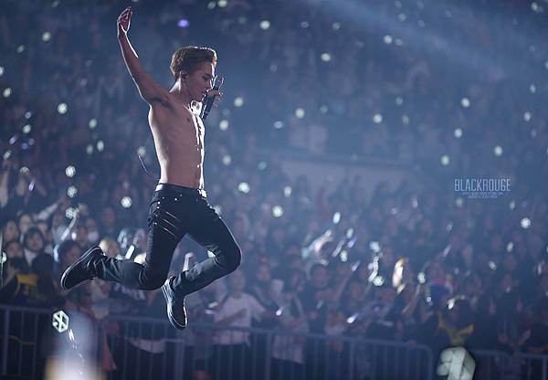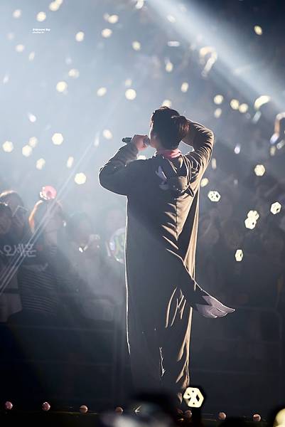 他穿著米奇裝,面對舞台很盡責的完成自己的part,此時我就是專注在他的背肌上,背影也好帥