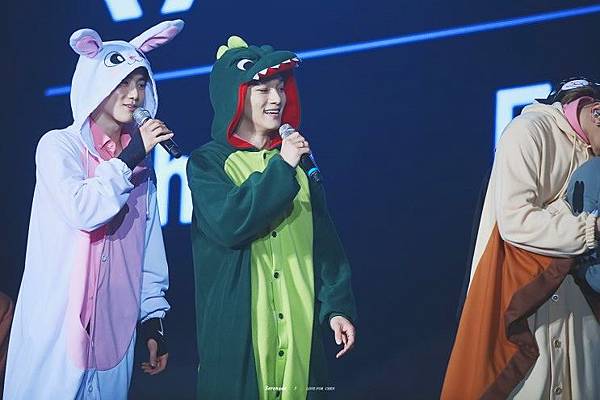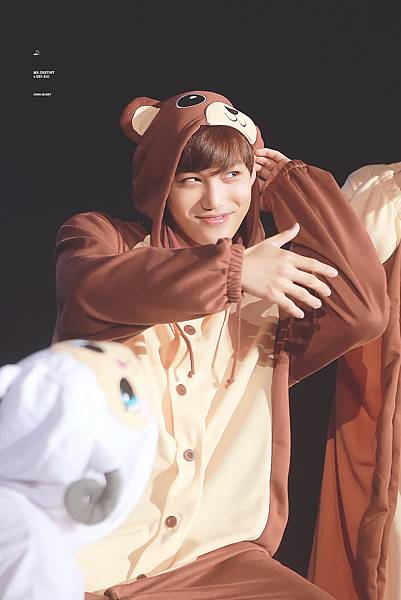 動物裝的時候兔砸金俊勉正好有道我們右側這邊來~ 他小小兔子屁屁一直扭扭扭的好可愛