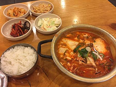 買完香氛回宿舍前去吃世勳推薦的泡菜鍋~這家小菜真的很好吃!可惜只有一個人要不也想點蒸蛋來吃吃