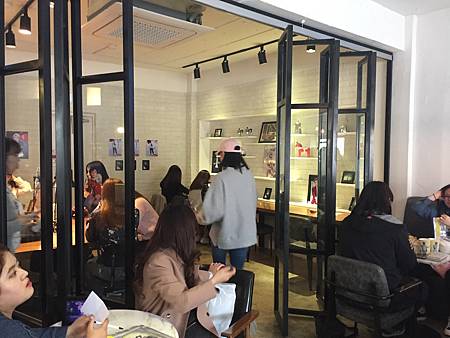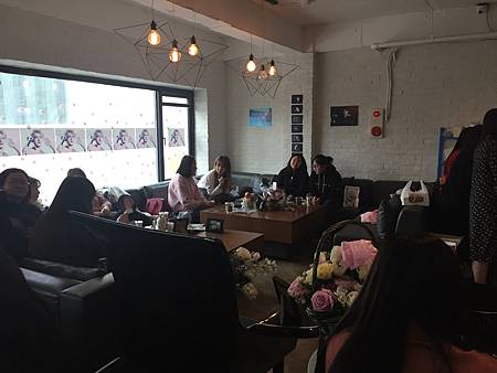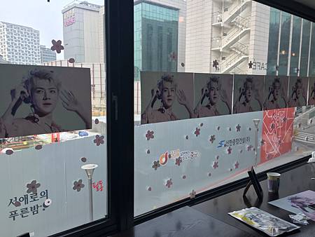 吃完休息一下又馬上殺到世勳的站子your breeze舉辦的咖啡廳去喝咖啡!這站子我對他的印象是~有很多高清的官方掃圖,印象中也有拍一些首爾場的影片,跟照片,但不是追得特別勤奮,可能就局限首爾一些場次,沒去過類似咖啡廳的風格就去一下。事前預約有送特典,但我現場報名就沒有送特別的東西,只有扇子小卡那些的,原本想買徽章但工作人員說是預約限定版,殘念。還好我去的時候人不多,靠窗還剩一排位置,咖啡廳的位置在很巷子裡,又在四五樓不好找,但是內部很大應該可以同時容納五十個人的位置,挺好的,大家坐下來喝杯咖啡照照相,翻桌率還蠻快的,天氣有點涼涼的我就點了熱拿鐵~一陣兵荒馬亂之下工作人員給我做了冰拿鐵~說要立馬做一杯新的給我,但我要趕去蝴蝶影像會了還得去跟珉慶吃飯,就說不用了直接給我做好的冰拿鐵~哈哈!行程太趕我坐下來屁股沒熱就走了!