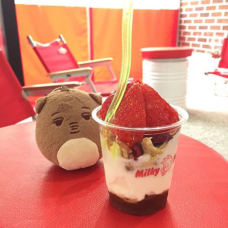 走了好遠來這裡,為了讓附加價值提高就去了之前嘟嘟去過的밀키요是賣好吃優格的店,之前逛三清洞有經過但沒進去,我一進門!!!又是一個人???明明外面人來人往的是星期六的早晨,天氣也好怎麼所到之處都是「哪轟甲」~這店的店員也是蠻親切的,我看了看MENU沒什麼困難的選了草莓優格~伯爵優格也想嘗試一下,我看之後進門的客人都是點伯爵優格~但覺得草莓拍起來好看顯色就選了草莓,蠻特別的,一層草莓一層優格還有穀片,淋上蜂蜜口感融合得剛剛好!