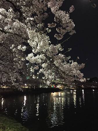 櫻花祭的活動已經結束,是到當天4/9晚上十點,人潮還未散去,活動應該是有現場樂團演奏一些音樂,活動結束之後來賞櫻的人們紛紛開始繞起湖邊