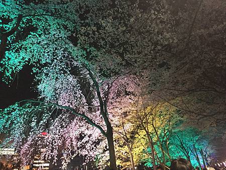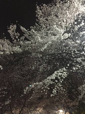 如果沒打顏色的燈路燈的顏色~看起來就這樣一片!雪白的櫻花照起來有點厚重,實際上是很輕柔的櫻花飄飄飄的