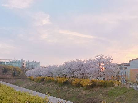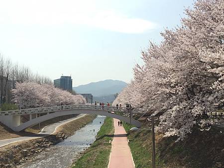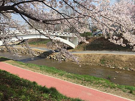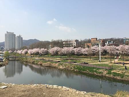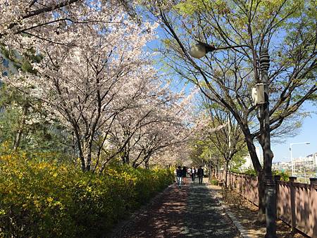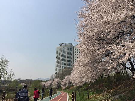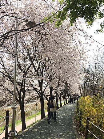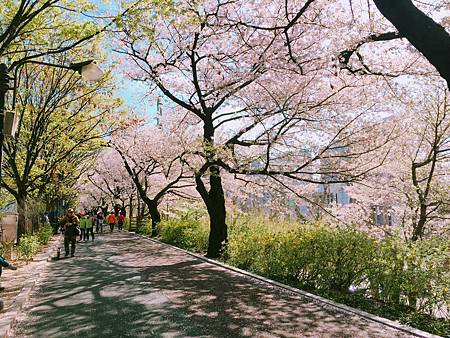 超閑暇!來賞花的人就是住附近來走一走,或者做做運動~看著櫻花漂亮隨意照幾張的,韓國賞櫻景點時常充滿一群過度噁膩曬恩愛過頭的閃閃情侶,這邊完全沒有。