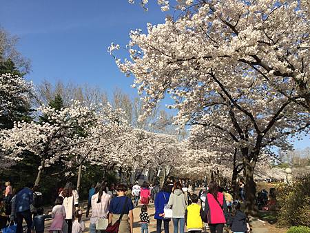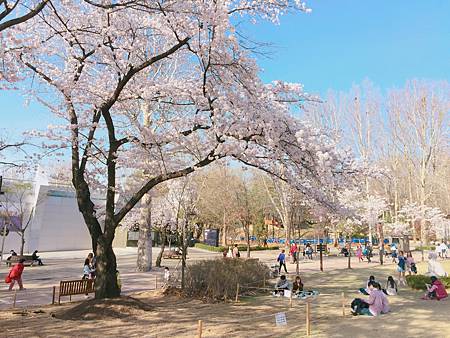 首爾兒童公園!除了汝矣島跟石村湖水之外,首爾兒童公園也是熱門的賞櫻地點,可惜我13年去的時候花苞還沒開,看著滿路的水楊櫻花樹扼腕,這次去之前先搜了照片確定開了我才去的。兒童公園的賞櫻氣氛跟其他地方比較不同,公園裡除了情侶,還有為數眾多的小朋友,都是全家出遊或是三代同堂出遊,很有家庭感,反而比較沒有閃光感。他們有的是來賞花,也有的是來動物園玩,有的是來買個氣球玩具什麼的~孩子們的笑語在公園的草地跟櫻花樹下飛舞著~賞櫻有另一種感動。