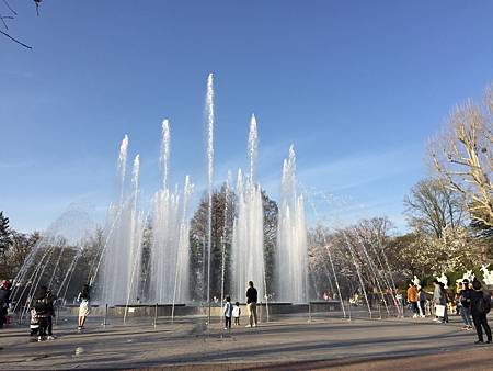 噴水池特定的時間會有音樂噴水秀~一群小孩就在那裡踏水玩水~以春天的天空來說那天的天空很藍很高!