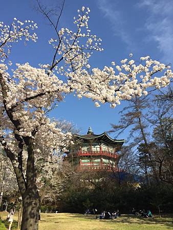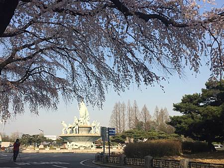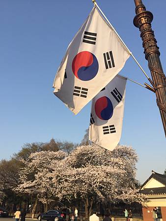 園內隨處可見飄揚的太極旗還有飄揚的櫻花樹!很有感覺~可惜我不太會取景!要不拍起來應該可以更美。