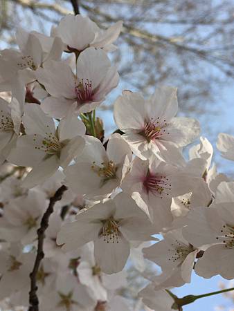 河岸邊一般大多是白色櫻花~這幾顆比較粉嫩的又剛好很矮就照了一下~IPHONE照像功能如果天氣好的時候真的拍得很美,但是光線不佳的時候拍起來就不顯色