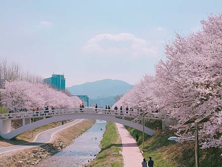 白色的橋邊是照相打卡的熱門地點,比起石村湖水或是汝矣島人不算多的!根本就是閑暇~我星期一去的還有一群一群畢旅的高中生,大部分時間可以任你自由地拍~