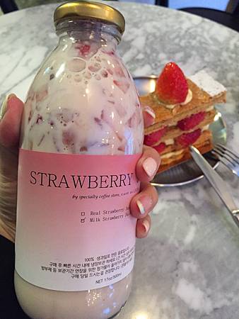 去首爾之前每天看IG都看到草莓牛奶,朝思暮想害我好想買!原定要去的安陽川櫻花那附近的一間甜點店,突然的計畫更動我就又找了一間離宿舍比較近的西來村的甜點店