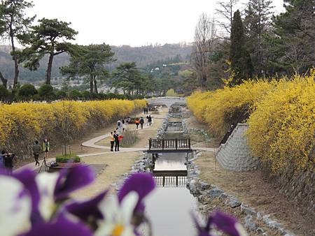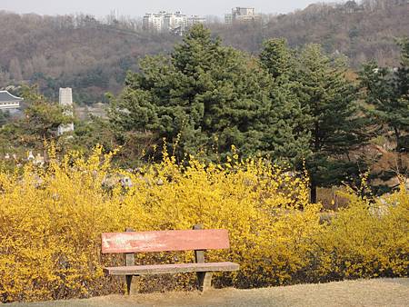 碎碎的黃色小迎春花개나리的顯忠川,小小的庭園造景每年春暖花開都綻放不同顏色。