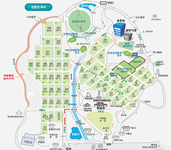 國立顯忠院怎麼去:坐四號線或是九號線到銅雀站下車,四號線是2或4號出口,九號線是八號出口。
