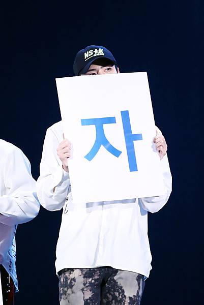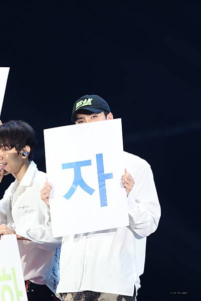 感覺就是他們的個性,我們照往例慢吞吞的收好行李望遠鏡之後還要喝口水,照張紀念照!結果我還在跟著喊ㅏㅅ랑해的時候!孩子們舉著應援版出來了!