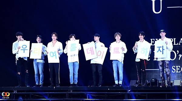 EXO逆應援排字 ,孩子們也排了更加驚喜連連又感動,舞台上沒水但淚水都在愛麗們眼框打転,這次的水不是工作人員提供的是愛麗們^^