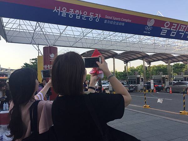 第一次去位於綜合運動場站的蠶室主競技場,場地很巨大,但進場無敵快速,根本沒有安檢,這麼大的場地不安檢不知道為何~安檢老是在檢查大砲也不知道是為何?大砲很安全啊!只是違反肖像權而已,可是萬一有人帶了炸彈進去我看保全應該不會知道因為他們只檢查相機 == 最近恐怖份子很恐怖的。。總之第一天一進去看到位置,慘了被兩個花道擋住,第一天被花道擋住視線不佳,被經紀人中控室內的人頭擋住(不知為何他們要站著看演唱會),除了幾次成員們來前面之外,幾乎整場看大螢幕,到前方的小舞台的時候又只能看屁股。呵呵~抽到票覺得位置不是很好,但第二天的票後來證明位置還不錯,看主舞台清楚只是人有點小,中央舞台用望遠鏡看視野很清楚,來到前方的小舞台又很近,是第三還是第四排。而且保全管得沒有很嚴可以用手機拍~只是我也沒拍幾張C呵呵呵