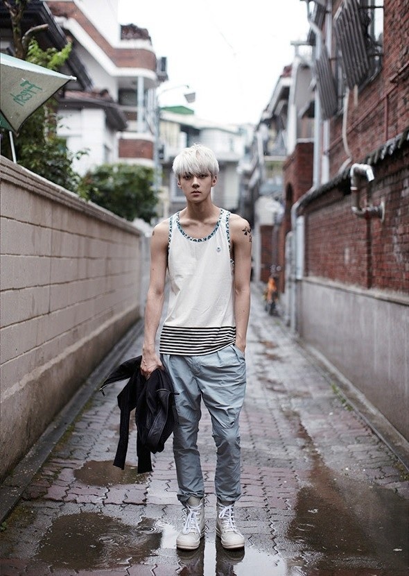從髮色!脫色的白髮!犀利的眼神(雖然九四都是一百零一套眼神套路)自然的站姿!性感滿點的鎖骨!手臂上滿佈的青筋~