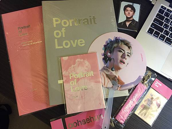 先來個FULLSHOOT!第四本寫真portrait of love 內容物是很正規的:寫真約190頁一本,小卡,明信片,扇子,透明小卡,大海報一張,小海報數張,粉色姓名吊牌一個,粉色貼紙。