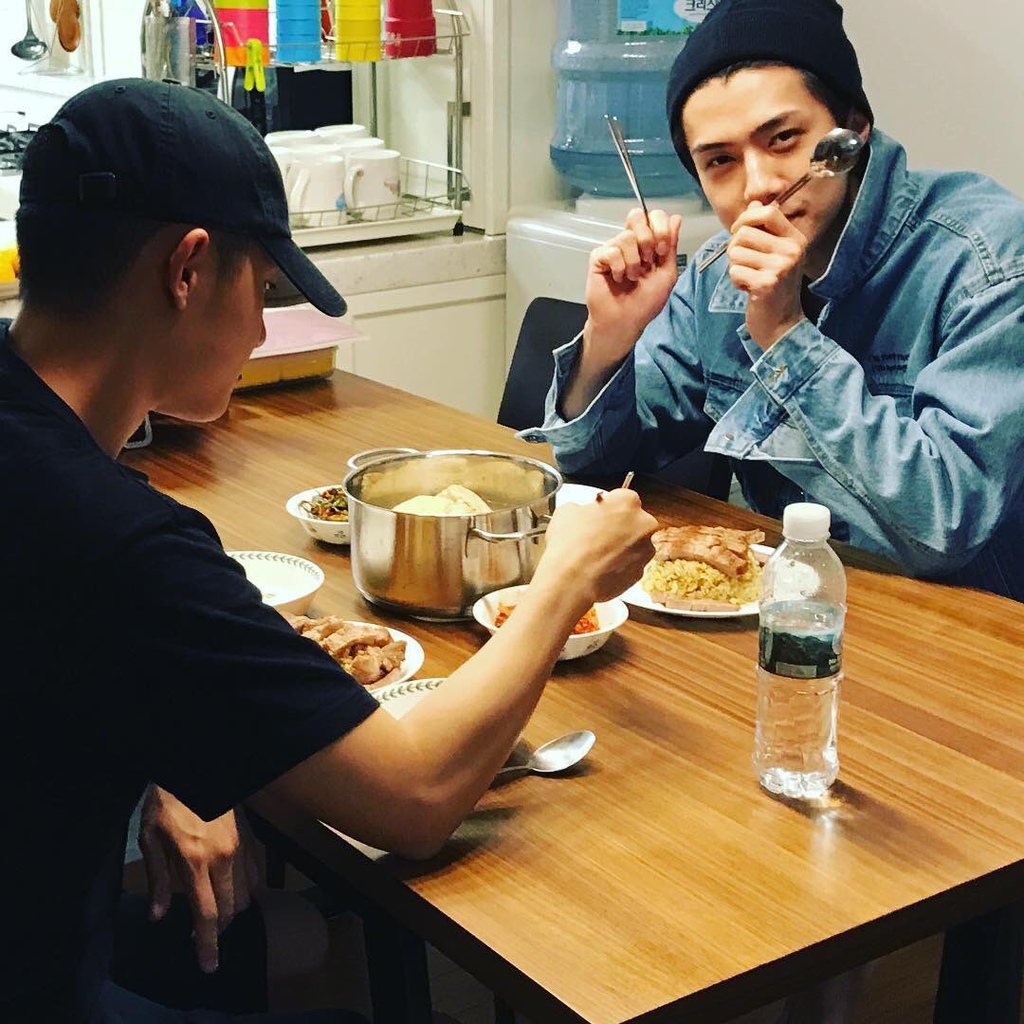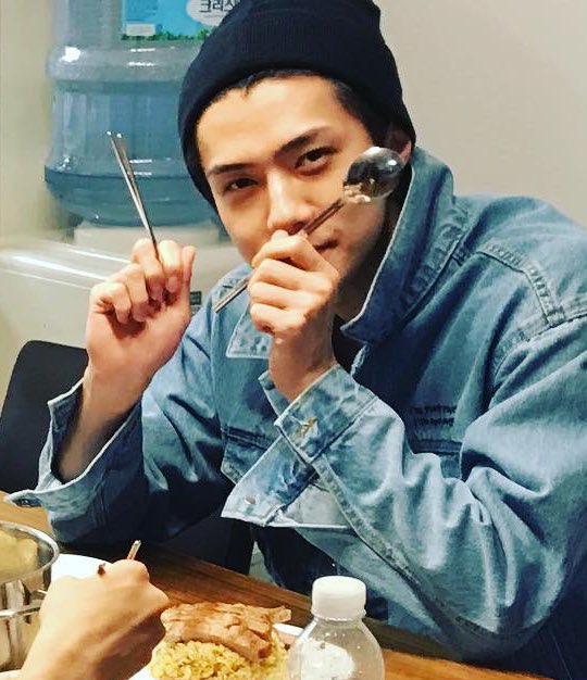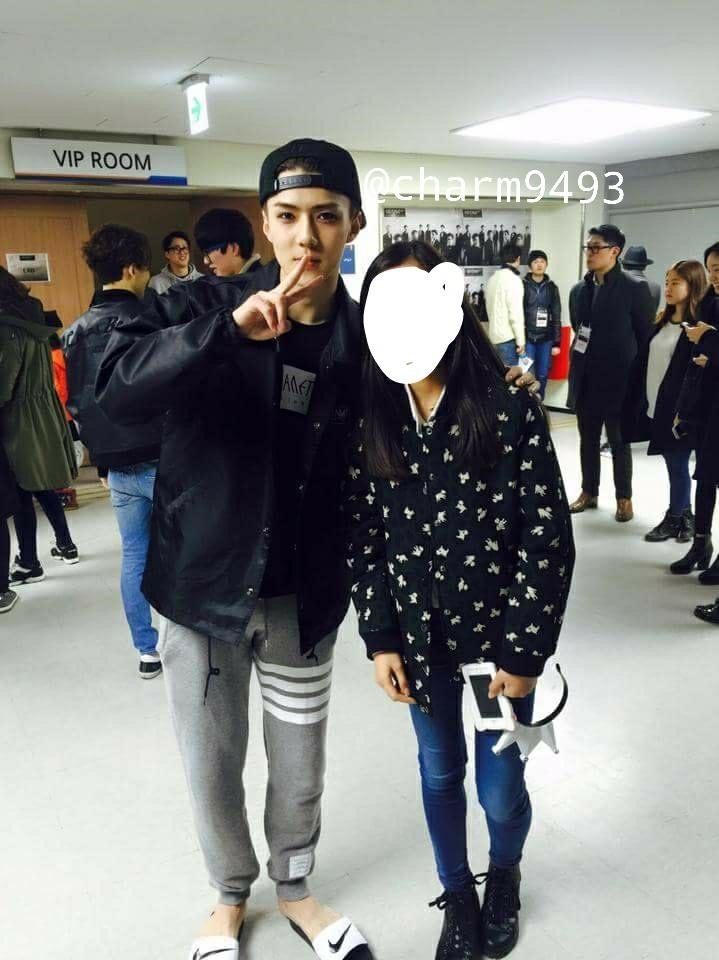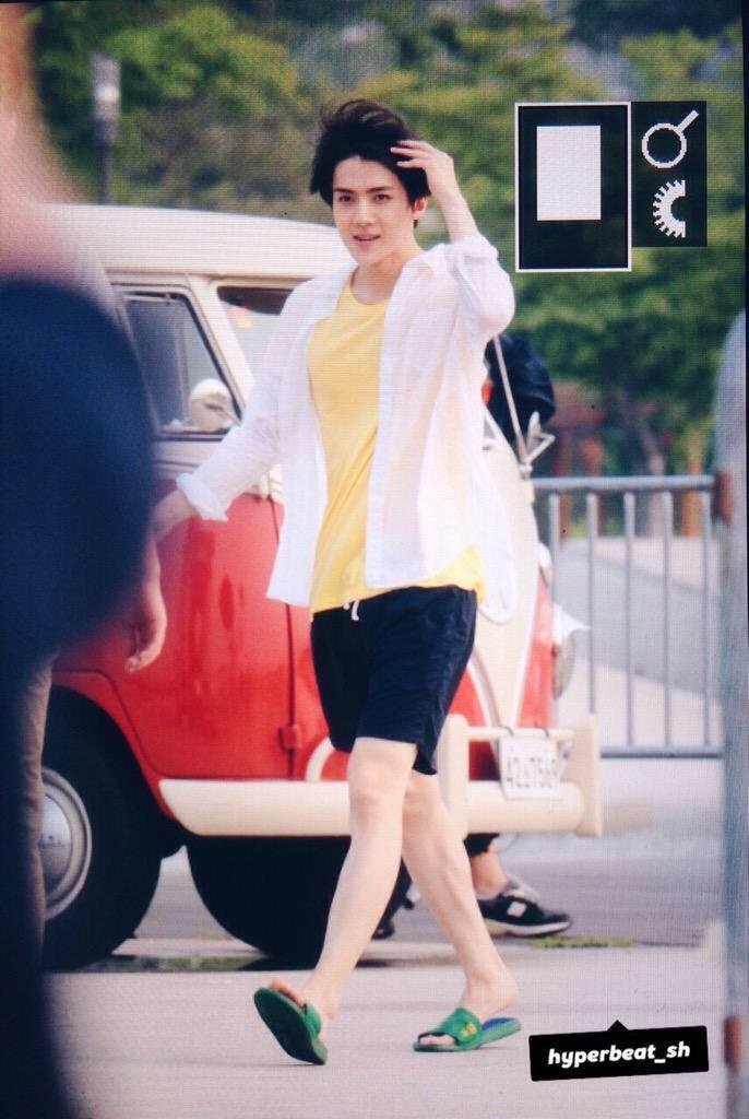然後突然又穿了球鞋還以為吳世勳轉性了!哈哈ㄏ!這件白色棉上衣好看!