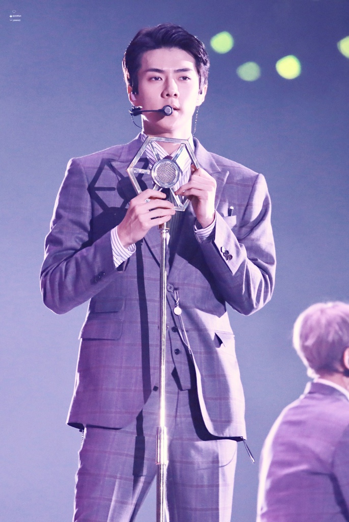 solo完吳世勳穿著絲絨紅色外套跳舞的時候POWER!衣服一上一下的~若隱若現的腹肌才真是殺死我!要看看不到最棒了!看得到吃不到。。。太平洋寬肩!diamond, coming over, RUNTHIS這幾首