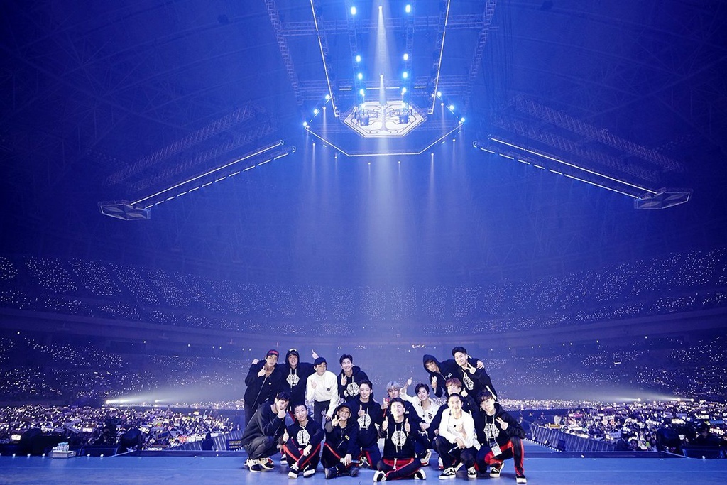 第一天:我坐在C9區,看中央舞台的視野還可以,但主舞台太遠用望遠鏡也看不到,以後如果要在巨蛋看我要再買一隻倍數高的望遠鏡眼睛才不會累。首場真的誰在哪裡什麼東西會出來全然不知道,很新鮮很有驚喜感,VCR主題很連貫就是一個又一個的門,開的瞬間移動把孩子們的超能力聚集起來?的那種感覺,第一天看得霧煞煞的,但反正帥到一個不行,尤其勳寶在大自然朦朧的霧氣裡面徘徊的時候,還有他的下巴怎麼會這麼尖啊,燦白是室內的戲,白白躺在沙發椅上面開燈關燈的蠻帥的,燦烈那部分(火)的CG真實感十足,第二天孩子們有稍微解釋劇情一下比較懂,但差不多就是那個方向。上次去高尺已經兩年前LOVE演唱會的時候,一代愛麗棒也是那時候出示的愛麗們還排隊買,現在二代愛麗棒整個會場內變色,聲光效果好美,尤其第二天看得蠻清楚的,七彩的三樓跟四樓^^舞台設計也是全新的,巨蛋蛋頂有巨型生命樹裝置,氛圍很好。舞台兩側設計一進場我想怎麼比一二巡陽春?整場看下來發現原來裝置都集中在舞台上了,而不是舞台兩側。燈效就不用說了,燈效是EXO每次都讓我驚豔不已的一個環節之一,去巡演不管大小場地,燈效都很夢幻奇幻的表現出來。這部分可能是靠在元哥的功力吧^^他真是一個很有想法又很好的人?可以感受到孩子們對他的信任還有愛?哈哈啊(對頂頭上司的小小馬屁也能時不時感受到)哈哈哈哈