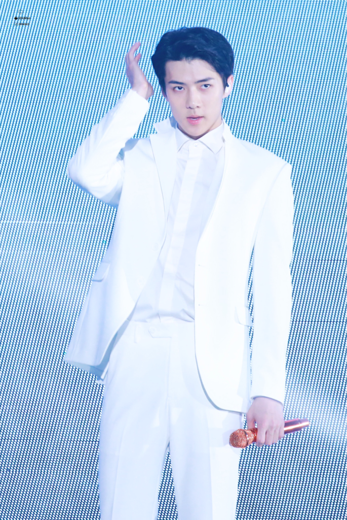 進場前在場外等婷就跟韓飯聊天,猜什麼歌會開場。推測是前夜!結果還真的是^^哈哈哈!這首開場好有感覺啊~全黑的時候只有白白倩倩超高音先出場!白色西裝外套八個孩子都帥!?邊伯賢竟然是銀髮?!!!!天啊~~~髮絲光澤閃亮亮要閃瞎我了~幾乎每個都是順毛的有瀏海!尤其珉錫好軟萌的感覺!超級童顏大哥^^讓人有忙內的錯覺!中間站著一個平頭的嘟嘟~吳世勳練身材之後肩膀寬的不像話,前夜每個孩子都好軟Q!
