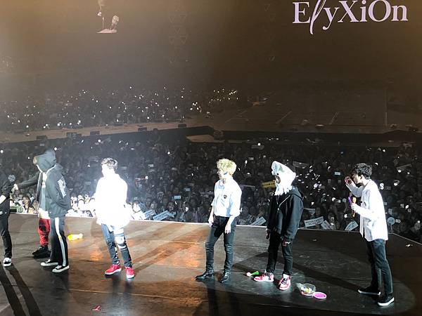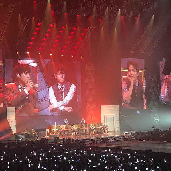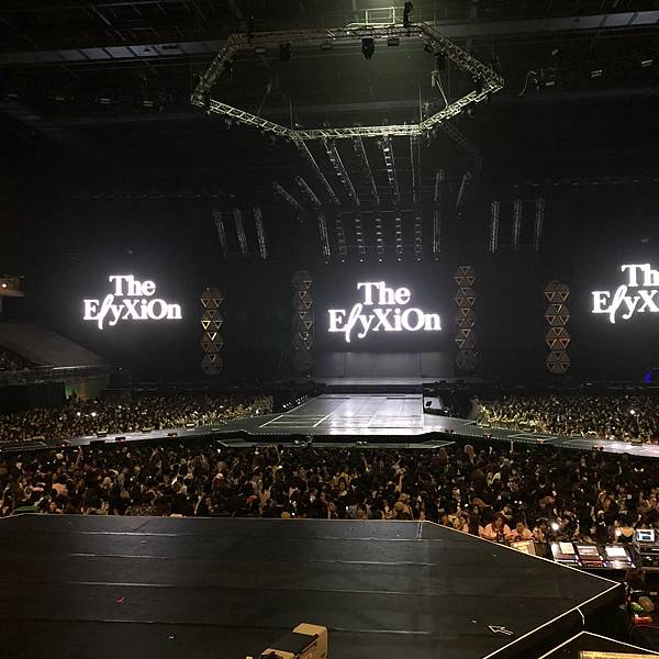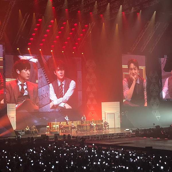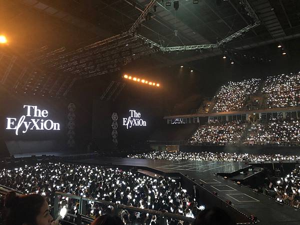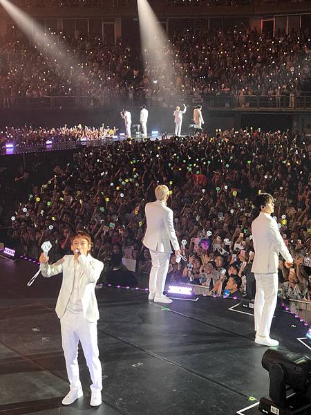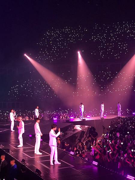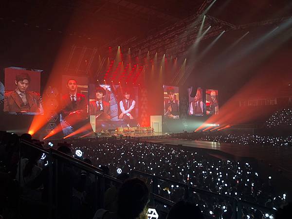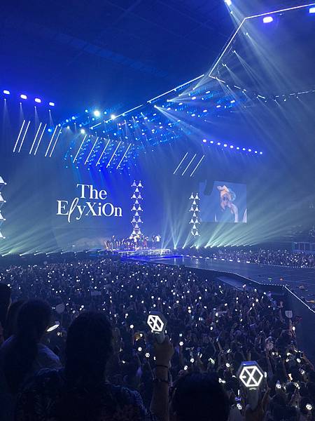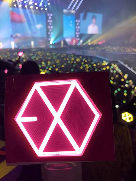 沒力氣拿望遠鏡!依照我的個性坐在這麼好的位置~望遠鏡應該整場演唱會都是我身體的一部份!但我真的連哪那個跟拿愛麗棒的力氣都沒,照明是真的很EXO很國家PICK很完美