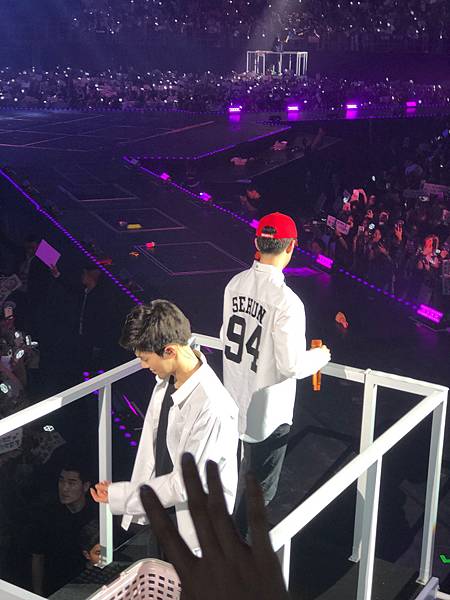 邊伯賢我整場都喊他的名字!!!今天感覺更銀白色昨天比較比較黃一點,好看的我第一次一直不停地想要把他們兩個放在同一個框,但是望遠鏡太小,沒辦法兩個一起放進去,甚至有時候我還只看邊伯賢不看吳世勳,我看吳世勳前半場的時候我就有預感,今天會有了不得的歷史課歷史性的一刻的那種照片出現,
