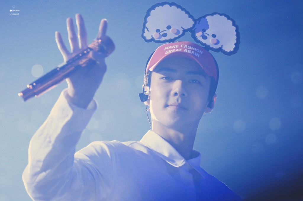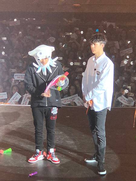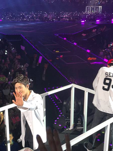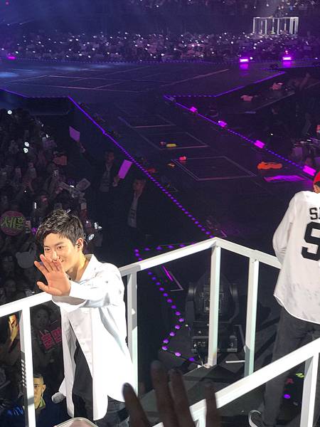 哈哈哈哈哈哈哈最後幾首歌的時候吳世勳有到中央花道來,我把應援的牌子舉得很高,但是他也依然是不看我啦,可能他害怕看我我就會脫飯吧。