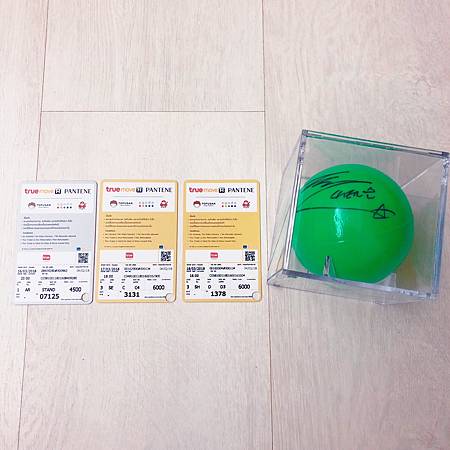 綠色球拿到馬上收起來打算接白白的球,但他離我比較遠就沒接到他的,感覺他都會看自己的粉絲牌子。重點是笑容超級甜。