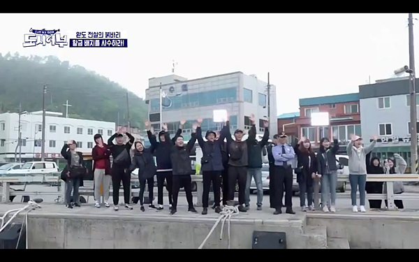 出征時的劇組在港口跟他們道別!!!!祈願李德華前輩可以捕到魚!釣到魚!!!