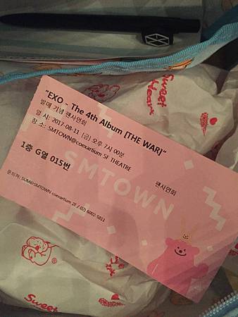 開始之前的公告說,可以帶禮物上去親手交給他們,我就拿了我的愛心信!九三九四的都有 還有俊勉的。原本要拿給燦白的東西也帶著 好多東西!手臂上掛著要給忙內的唯一兩盒鳳梨酥+松子酥