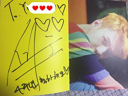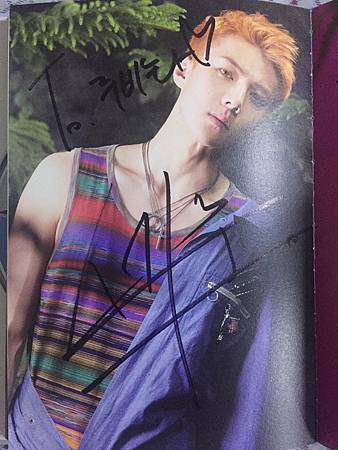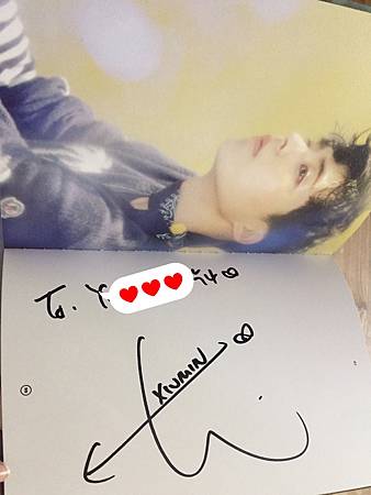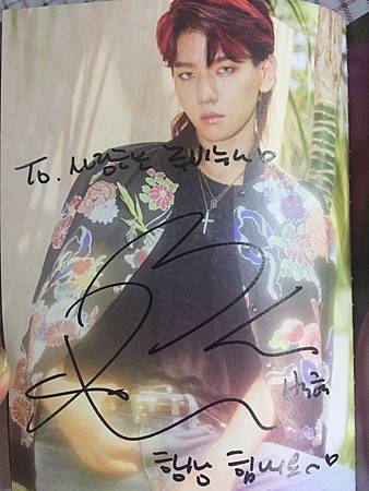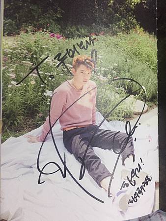 我以為會被拒絕已經做好被拒絕的萬全準備還有心理建設!哈哈哈!想不到一秒變成朴夫人,他簽好名了問我名字是什麼,我才荒裡慌張的說RUBY奴那!因為跟第一天是不同名字我解釋了一番~那是我的護照名這才是我的英文名~護照名不好聽!燦烈說對啊!RUBY好聽多了!我整個人沒融化也是厲害^^燦烈應該是不記得我!但是看到自己簽名所以知道這人來過