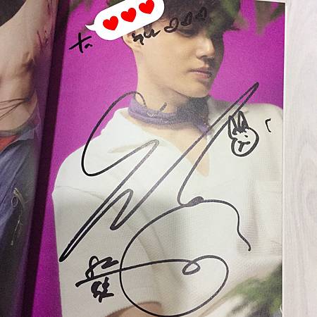 鍾仁第一天看跟這天看皮膚都比較不好一點!比起全部的孩子們!可以看到一些遮痘疤的痕跡!但我不是很在意這個!只是有注意到!鍾仁一邊唸名字一邊寫的好習慣!可愛~又畫了一隻熊給我~我金鍾仁金俊勉兩個人就每次都來收集一下兔子跟熊熊好了!看能收集到幾隻!下台之後看了他給我寫的心動一句話!要時常想著我!哈哈