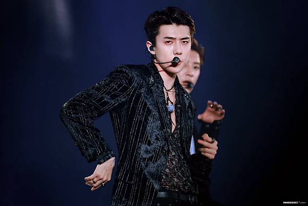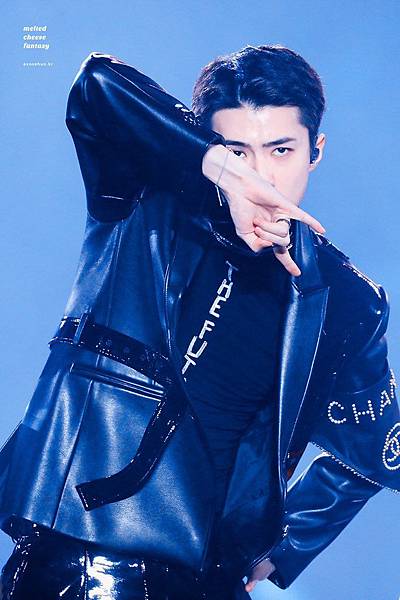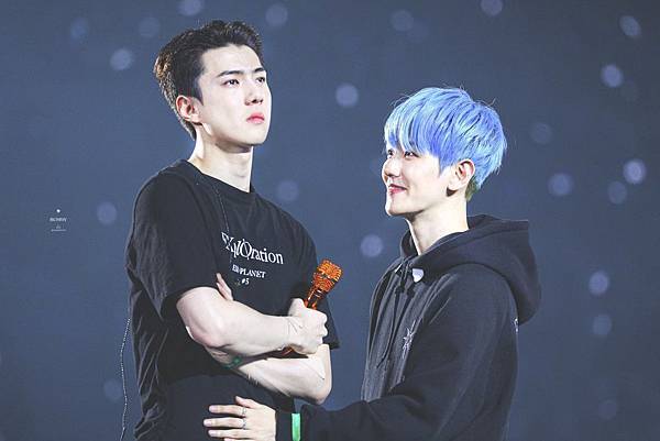 什麼一個藍精靈~~~~~好好看啊~~~襯托著的臉很有精神,很愛豆,然後燦烈染回黑色,勉勉依舊是火紅的髮色,好身材跟KAI都一覽無遺,吳世勳呢,中規中矩可是好帥啊,愛死那套皮褲衣服了《中間94兩個BREAKDANCE天啊 這是什麼天堂啊!每次鏡頭照到吳世勳都要昏厥,也太帥了真的無法適應。倩說開場的出場順序是世勳的主意,還跟PD討論了鏡頭怎麼拍,出了很多意見,我回家補飯拍一直想到這個。衣服是OBSESSION的概念卻是EXO的妝感,一連串開場曲好嗨好震撼,지킬那邊我記得世勳好像說過無理由的喜歡這首,但我看了編舞!天啊 也太懂我們愛麗在想什麼要什麼吧~營造各種CP感,小寶내가 나를 지배해?鏡頭下超完美無暇的臉~從這裡到MONSTER的過場也好喜歡,總之特別愛EXO的宇宙觀打造的演唱會風格!這次新歌小寶都跳得好認真的,也不是說舊的歌就跳的不認真,只是跳到MONSTER,咆哮,CMB的時候,我就不覺得世勳在思考在想,舞步從肢體裡行雲流水的就出來了,走位不自覺的就到了,一個眼神一個動作彷彿都是刻在心裡的那種自然而然,就好像我拿著望遠鏡盯著走位的移動也是不需要思考的那樣,但其他新曲就有種悸動的緊張感!感覺那些年那些歌都刻在我跟世勳的骨子裡,很自然的就反應出來了。