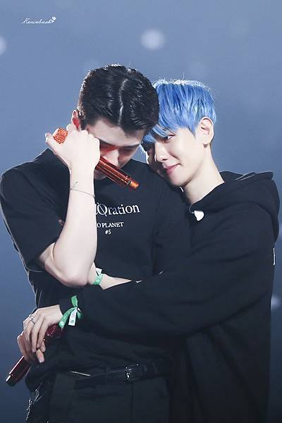 第三場,安可完在ment的時候,燦烈做的那個影片,我一邊要看影片,一邊看著他寫的信,好多東西數不清的過往,數不清的刷卡跟上上輩子的回憶,通過大螢幕呈現出來,大概到了中段我才捨棄了看影片的內容,只看字幕,燦烈文筆還不錯啊,的確挺令人感動的,但那個時候我還沒有想哭,只是開始聽到前後左右窸窸窣窣的啜泣,後來燈亮了,我看著勳寶,然後看到孩子們淚光閃閃的眼眸,一直我的注意力都在世勳身上,看到他在忍耐,忍著不在我們面前哭,不停的抿嘴,頓時間開始祈禱希望我的小寶千萬別哭啊,我怕我也會哭出來,伯賢有察覺到世勳快哭了,一直在看他,這時候我真的無暇其他,