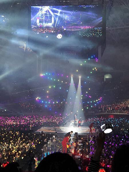 第一天演唱會原本想要放棄了,一方面是沒預算,一方面懶癌上身,想說第二第三場應該都會坐的很近,也不差那一天,還好,還好我還是爬進去了奧林匹克體操競技場,因為誰也想不到我套裝行程呢的臭手能夠那麼臭!貴婦竟然抽到那麼後面的票== 第一次跟票務買票,過了支付寶,微信的重重困難,差點兒遲到了反正拿到我隨機的票,還不錯是14區中段牌數的票,看主舞台有點兒斜但是孩子們到中間舞台多虧了我的望遠鏡都還蠻清楚的。