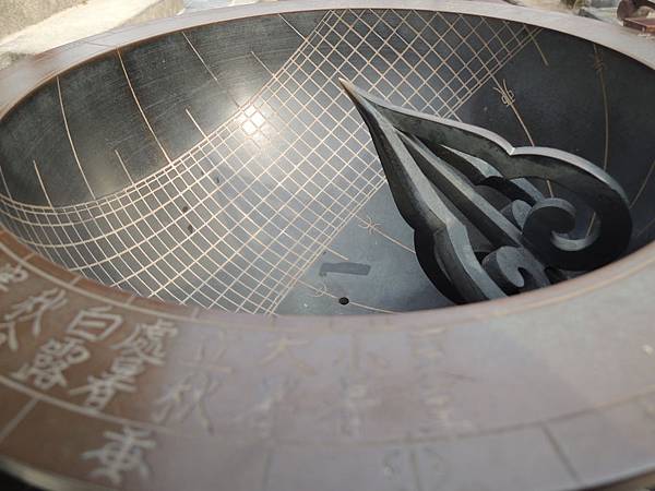 可以看到二十四節氣,跟時間點,我們那時候正好是午時三刻,看日晷影子的尖端就可以知道
