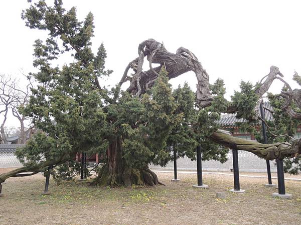 宮門前的松樹~樣子很奇特,還有很多支柱撐著他~